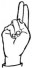 На ћирилици написано АНДЈЕЛИНА КУРМАЗОВИЋ састоји се из 19 слова [?]. Исписано ћириличном једноручном азбуком за глувонеме: